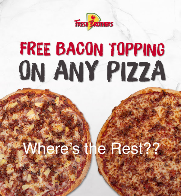 But what is this? I got it in an email. This is not a pizza coupon. A pizza coupon sounds something like, “Free medium, 2-topping pizza and a 2-liter bottle of Dr. Pepper with purchase of a large one-topping pizza.” See all that? That has a free bacon topping contained within it. It has a free pepperoni topping, too. Free cheese, free sauce, free Dr. Pepper, free crust, free a whole fucking pizza!